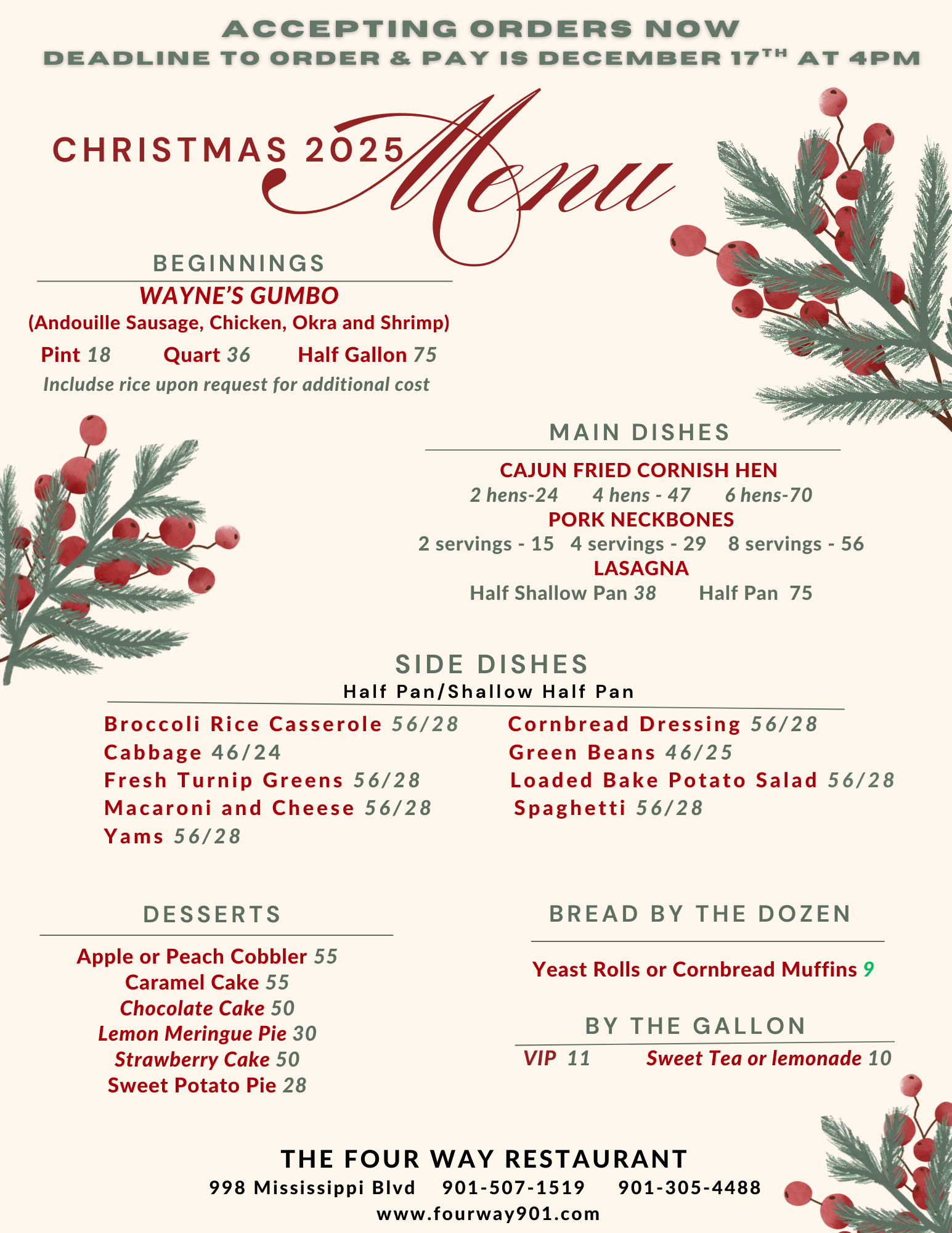 Please review our menu and give us a call, order online, or come in to place your order for this year’s Christmas Holiday.